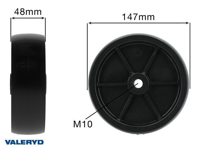 Jockey wheel Ø48 mm Plastic rim. Solid rubber wheel 200x50mm. Support load 150Kg